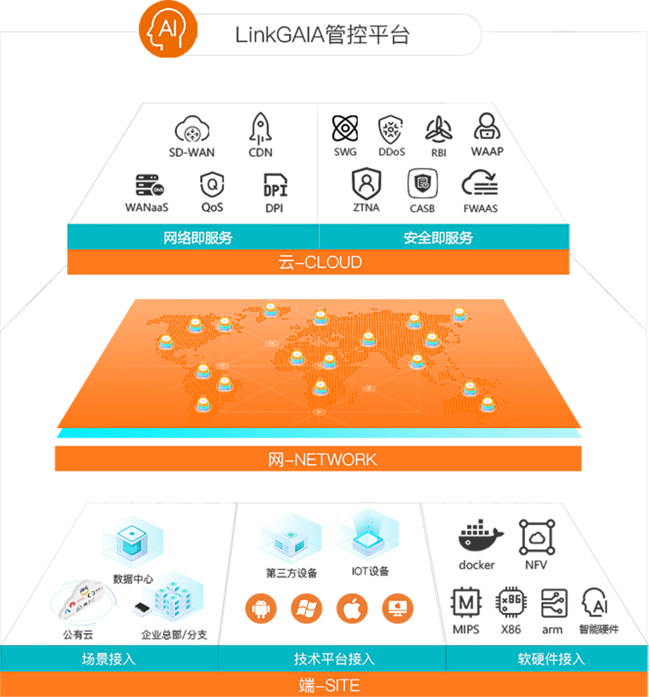 FlyWAN云网络和安全产品,是一种SASE的架构。